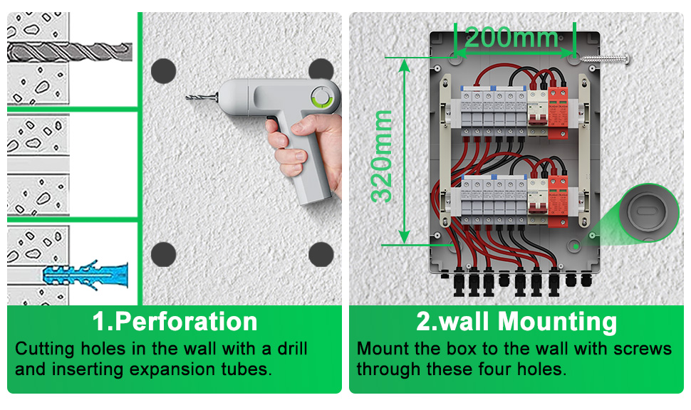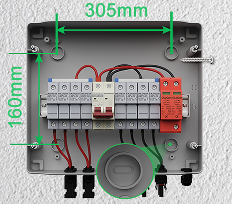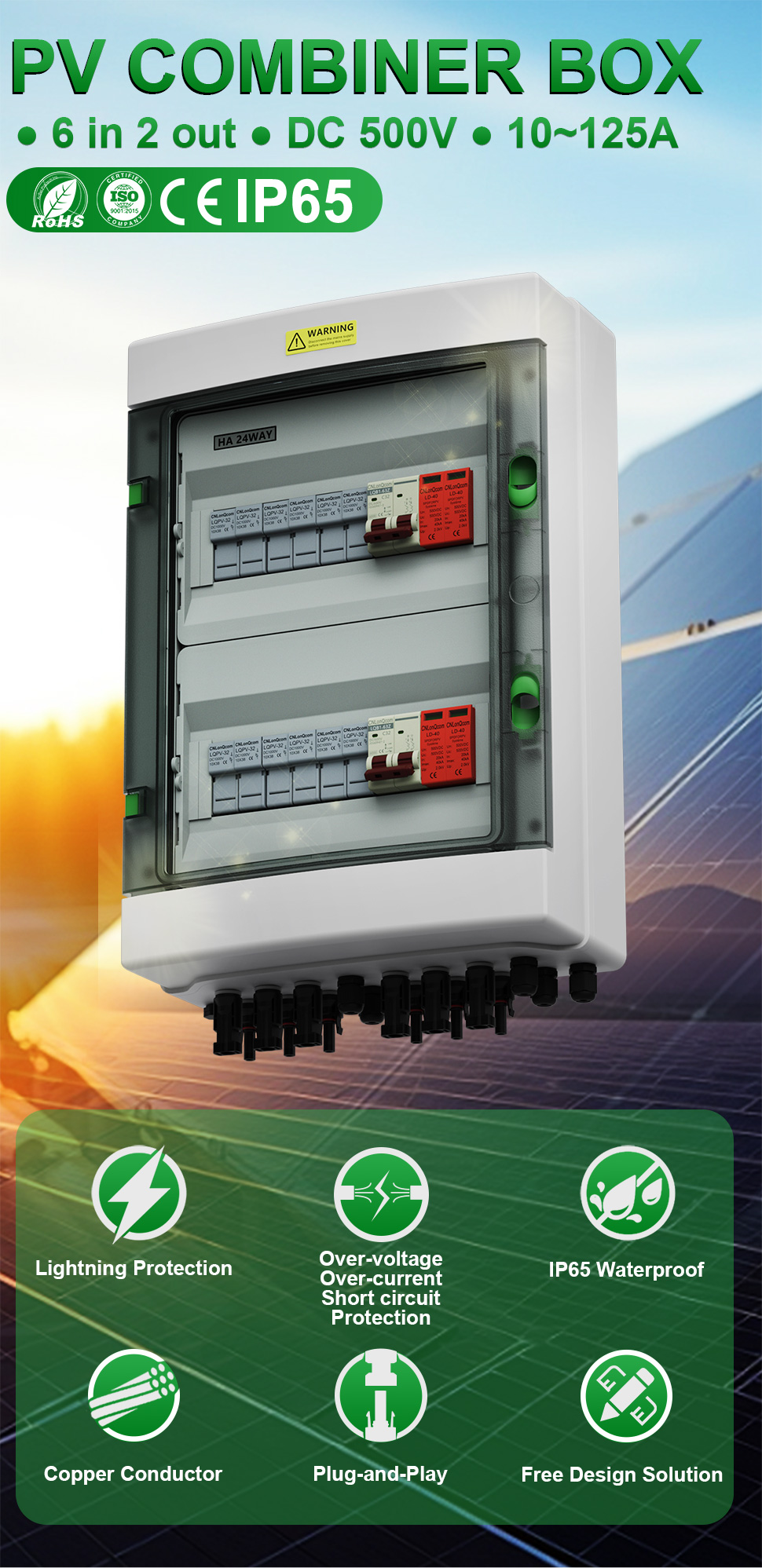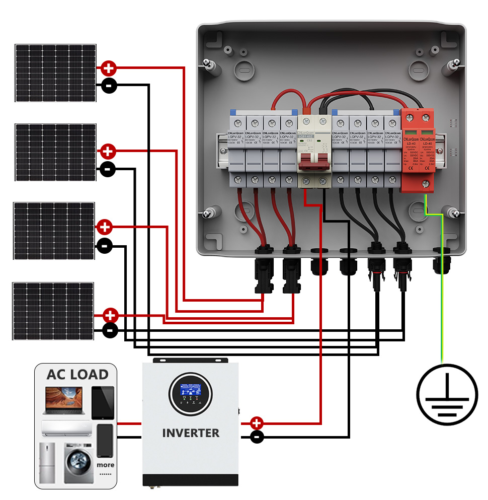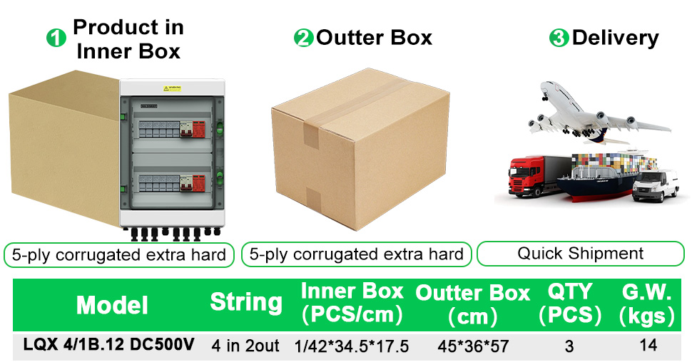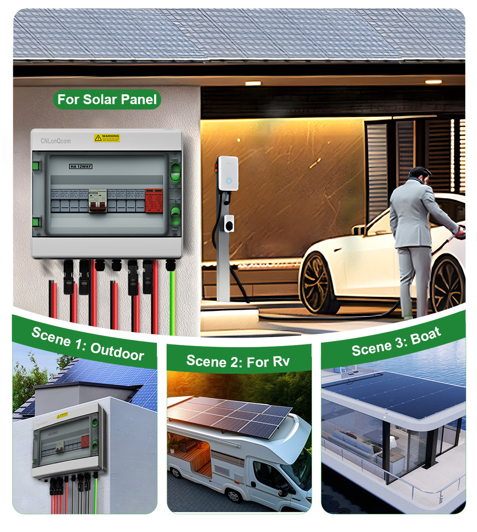 Sraith HA CNLONQCOM Plaisteach PV PV BOSCA 4 IN 1 AMACH DC500V Tá cás uiscedhíonach PC+ABS le tógáil séalaithe, cosaint ró -ualaigh, cosaint chiorcaid ghearr, cosaint ró -voltais, deannach, taise agus cosaint tintrí.